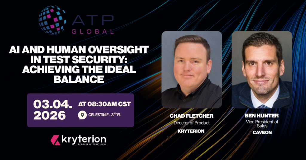 At Kryterion, our mission is to empower your program with solutions that are as reliable as they are innovative. Our sessions at ATP 2026 reflect this by addressing both the high-tech future of security and the high-touch necessity of candidate support.