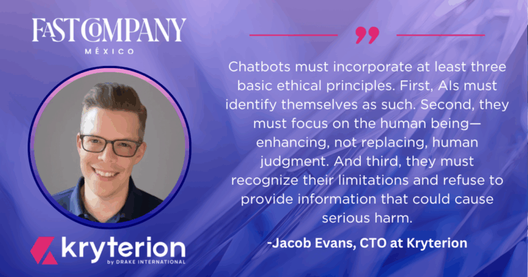 Kryterion’s Chief Technology Officer, Jacob Evans, was recently featured in Fast Company México in an article examining the ethical challenges emerging as conversational AI systems become increasingly personal and persuasive.